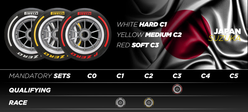 En Singapur, como es habitual en un circuito urbano, se ha seleccionado el trío de compuestos más blandos: C3 como P Zero Blanco duro, C4 como P Zero Amarillo medio y C5 como P Zero Rojo blando. Esta combinación ofrece el máximo agarre en un circuito revirado y exigente para los neumáticos como Marina Bay, especialmente en tracción y frenada.En Suzuka -uno de los circuitos más exigentes para los pilotos y, sin embargo, de trazado severo para los neumáticos- se utilizará en cambio la nominación más dura utilizada hasta ahora en 2023: C1 como P Zero Blanco duro, C2 como P Zero Amarillo medio y C3 como P Zero Rojo blando.