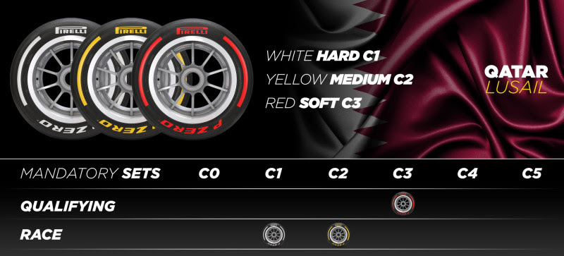 Al igual que en Japón, Pirelli llevará a Qatar el C1 como P Zero Blanco duro, el C2 como P Zero Amarillo medio y el C3 como P Zero Rojo blando.